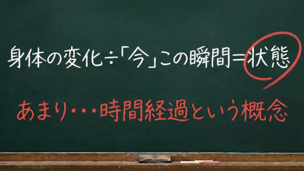 身体の変化 ÷「今」この瞬間 = 状態 …余り:時間経過という概念